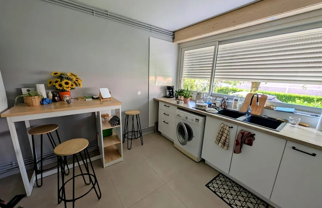 L'appartement dispose de 1 chambre à coucher. Un point fort de ces appartements Chambre cozy, vue sur jardin, proche Tram centre ville&aéroport est la présence des serviettes et des pantoufles dans la salle de bain. Une toilette séparée et une douche sont également disponibles.